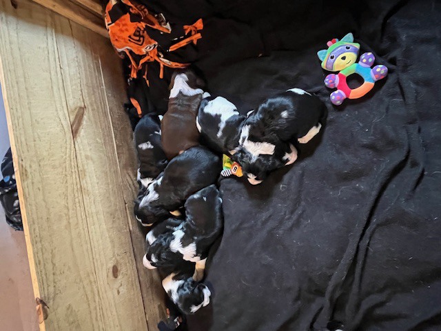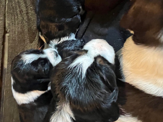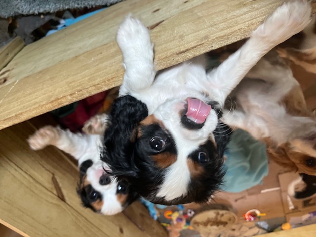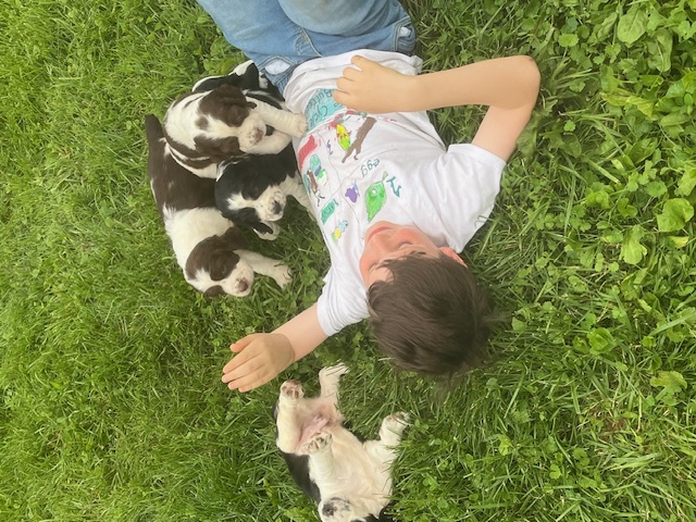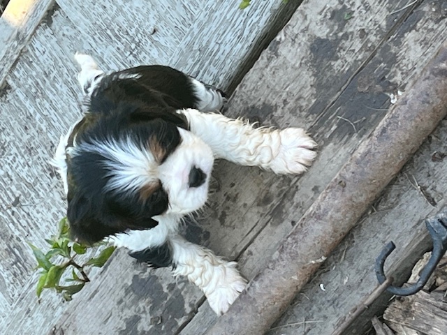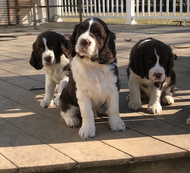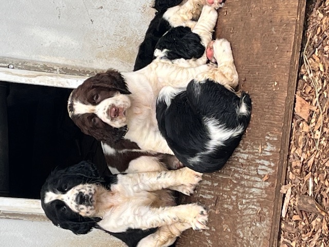 I HAVE SPRINGER SPANIEL PUPS Here as well as a cavalier bred they are 3 weeks old today 03/14/2026 they will see the vet at 7 weeks I have 2 tri-color blak males 1 black white male and 1 liver/white male as well as a black and white female available just starting to walk around better eating food from the dish very healthycontact me at 301-748-4611 you are welcome to visit